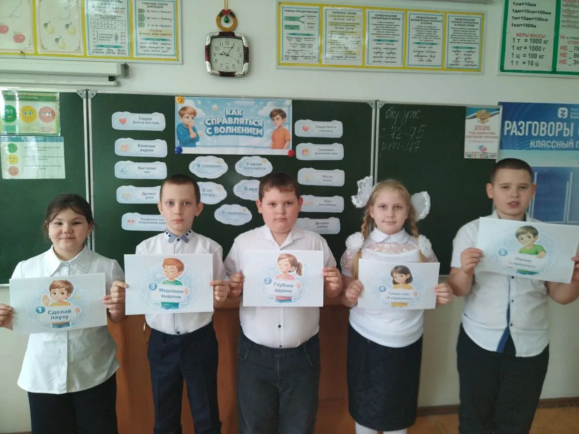 Учащиеся узнали, что волноваться перед контрольной, выступлением или новым знакомством — это нормально и свойственно каждому человеку. Дети познакомились с простыми и эффективными приёмами:
