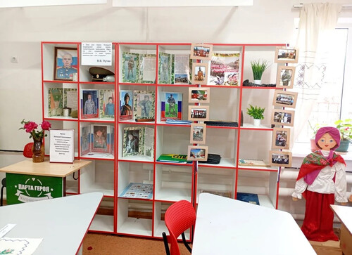 В школьной библиотеке представлена музейная экспозиция ЛЕНТА ПАМЯТИ. «НАША ПОБЕДА, РОДНЫЕ ЛИЦА.» Она приурочена к дню ГЕРОЕВ РОССИИ . На данной экспозиции представлены фотографии наших земляков , участников Великой Отечественной войны. Это материалы из семейных архивов учителей и учащихся нашей школы. На экспозиции также представлены гильзы от патронов и снарядов, найденные на территории сельского поселения, жителями наших сел. Данные мероприятия способствуют укреплению нравственных позиций учащихся, чувства собственного достоинства, гордости за свою малую родину, за свою Отчизну.