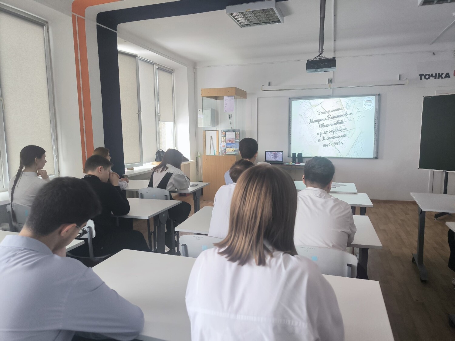 13 февраля - знаменательная дата: в этот день в 1943 году Октябрьский район был полностью освобожден от немецко-фашистских захватчиков. В честь этого события сотрудники Краеведческого музея совместно с советником директора по воспитанию Палько Анаит провели выездное мероприятие для учеников МБОУ СОШ № 23 имени В.К. Поваренкина. В ходе встречи учащиеся ознакомились с хронологией военных лет, узнали о стойкости местных жителей и изучили подлинные исторические документы. Особую атмосферу создали аудиозаписи и текстовые воспоминания очевидцев, позволившие ребятам глубже прочувствовать тяготы оккупации и радость долгожданной победы. Подобные уроки мужества призваны укрепить связь поколений и сохранить память о подвиге земляков. Музей планирует и в дальнейшем проводить подобные просветительские встречи для молодежи. | |