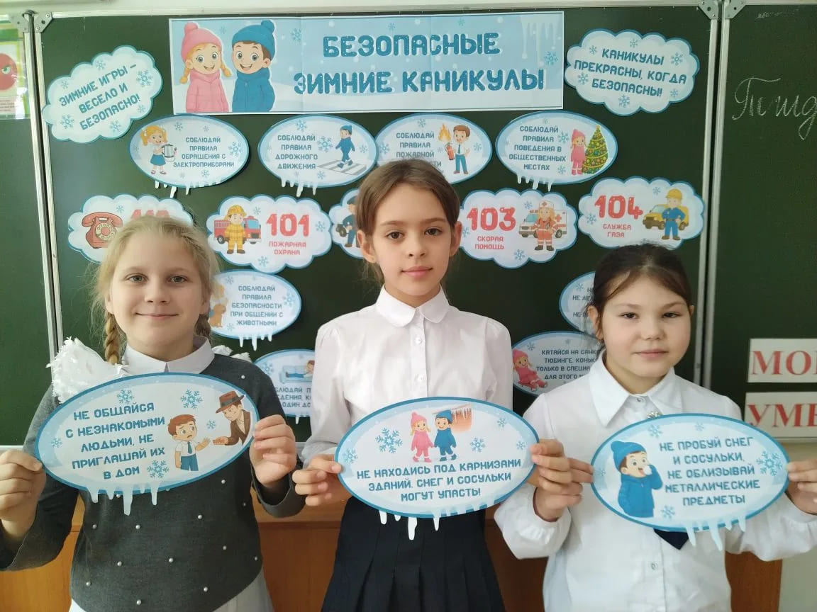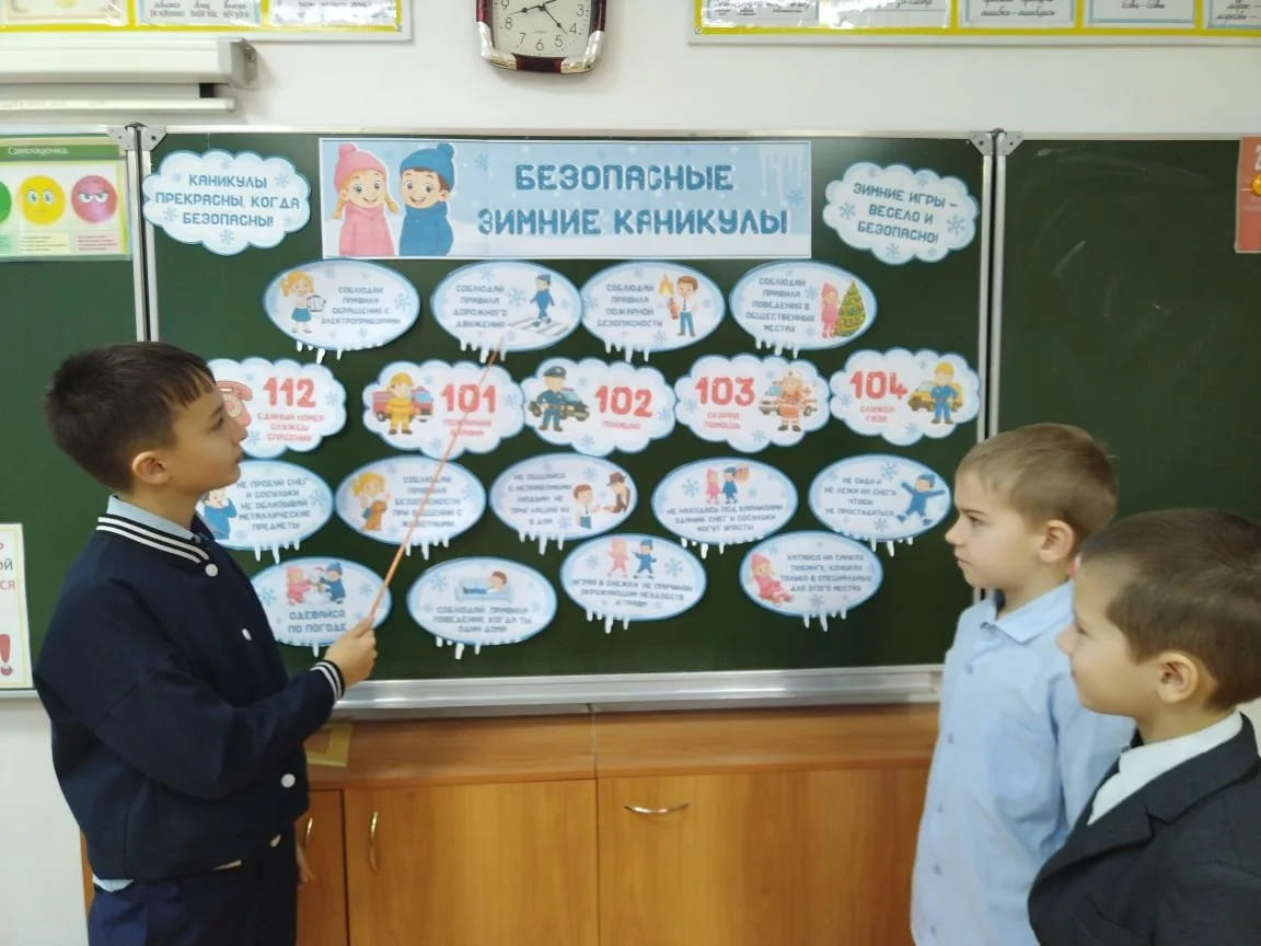 Урок "Безопасные зимние каникулы" в 3 Б классе. Сегодня, 30 декабря, в 3 Б классе прошел важный урок под названием «Безопасные зимние каникулы». Цель мероприятия заключалась в закреплении знаний учащихся о правилах поведения и мерах предосторожности во время зимних каникул. Главными моментами урока было :