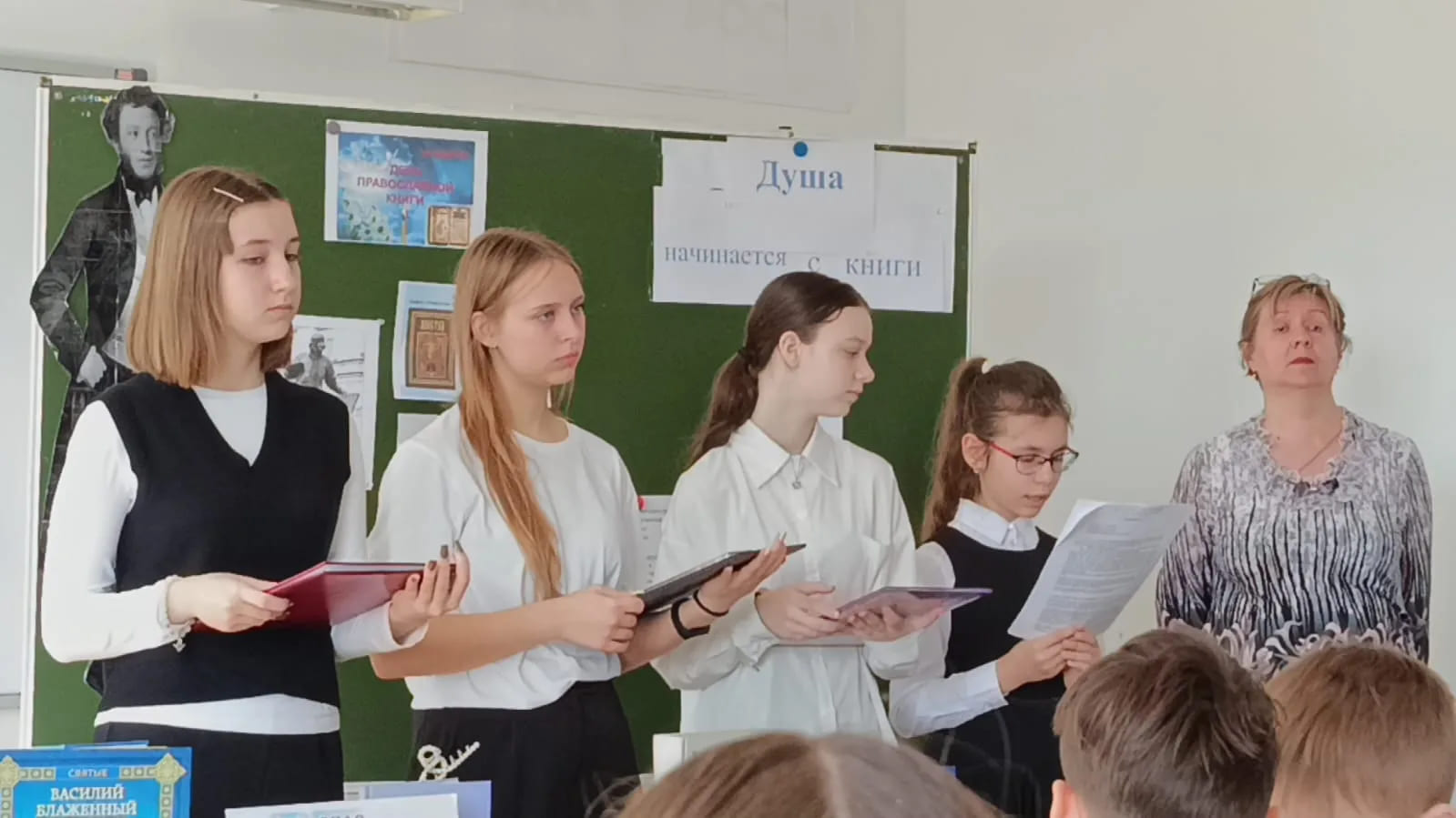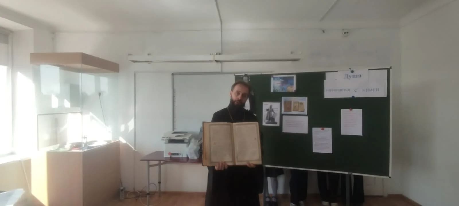 12 марта в МБОУ СОШ №23 для учащихся 6-х классов состоялась тематическая встреча «Душа начинается с книги». Мероприятие посвятили Дню Православной книги, который отмечается 14 марта. С ребятами провел беседу настоятель храма Архистратига Михаила, благочинный приходов Нижнедонского округа протоиерей Сергий Яценко. Священник рассказал детям о первопечатнике Иване Федорове, благодаря которому в 1564 году в Московском печатном дворе вышла в свет первая печатная книга – Апостол. Юная аудитория поинтересовалась, что это за книга, и услышала рассказ о Священном Писании Нового Завета, о деяниях и посланиях Апостолов. Отец Сергий принес с собой Богослужебные книги, современного и старинного издания, дети с интересом ознакомились с необычным для них церковно-славянским шрифтом. Ребята под руководством учителя ОДНКНР Козиной Н.В. рассказали о святых равноапостольных братьях Кирилле и Мефодии, трудами которых Священное Писание было переведено на славянский язык. Детям интересно было узнать разницу между языками - церковно-славянским и современным русским. Беседа получилась познавательной и интересной. Для ребят была организована выставка-просмотр «Духовное наследие в книгах и чтении ». Эпиграфом к выставке стали слова старца Макария Оптинского: «Чтение духовных книг просвещает наш разум и показывает путь ко спасению, питает душу так, как физическая пища питает тело». На выставке были представлены не только православная литература, но и художественные произведения: повести, стихи и рассказы русских православных классиков, а также современных авторов, открывающие христианские истины. В завершение встречи отец Сергий каждому ребенку вручил книгу А.П Чехова с поучительными рассказами.