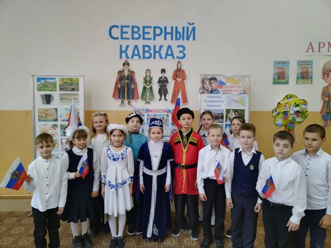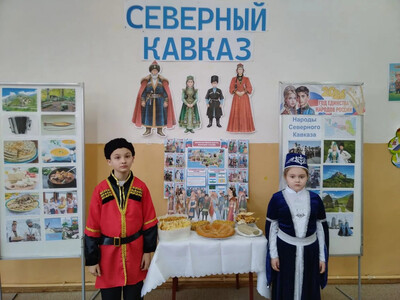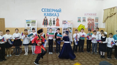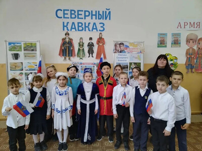 Учащиеся 2 и 3 классов посвятили свои выступления республикам Северного Кавказа. Они рассказали о многообразии национальностей, особенностях языков и уникальных традициях кавказских народов. Особое внимание привлекли национальные костюмы, а кульминацией стал зажигательный кавказский танец. Были представлены традиционные сладости , а стихи о дружбе и единстве прозвучали особенно трогательно.