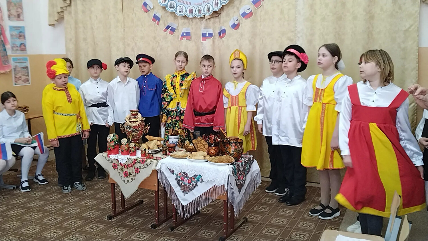 4 класс выступил в роли гостеприимной хозяйки — ребята представили Россию как общий дом для всех народов, где ценят дружбу, уважение и взаимопонимание.