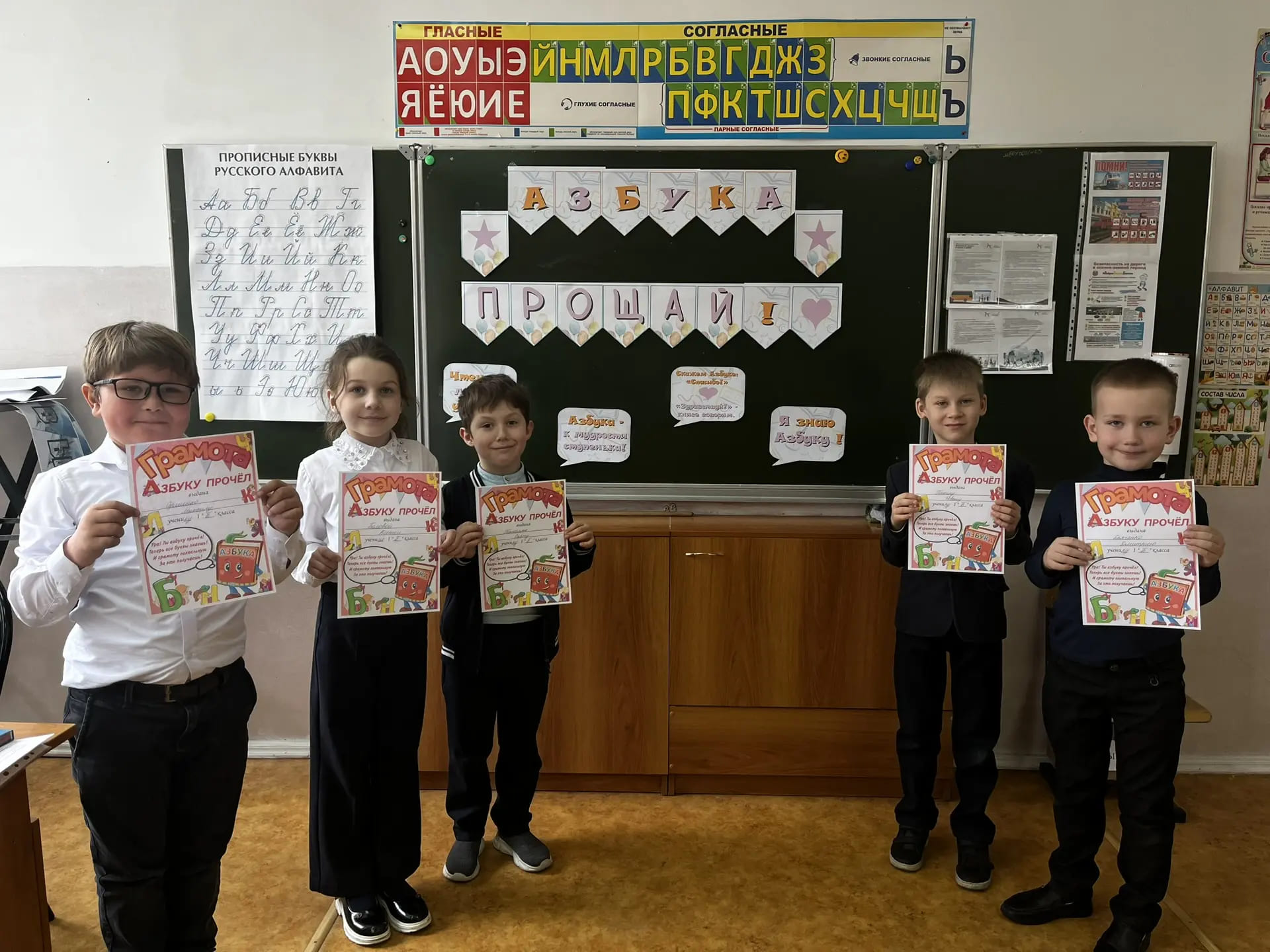 Сегодня в 1 Б классе прошло мероприятие «Прощай азбука!» Подвели итоги первого значимого этапа обучения грамоте и создали положительную мотивацию к дальнейшему изучению русского языка и литературы. Дети попрощались с азбукой, рассказали стихотворения. Обучающиеся подготовили буквы и загадки о своих буквах! Получили грамоты, которые подтверждают, что дети прочли свою первую книгу «Азбуку»!